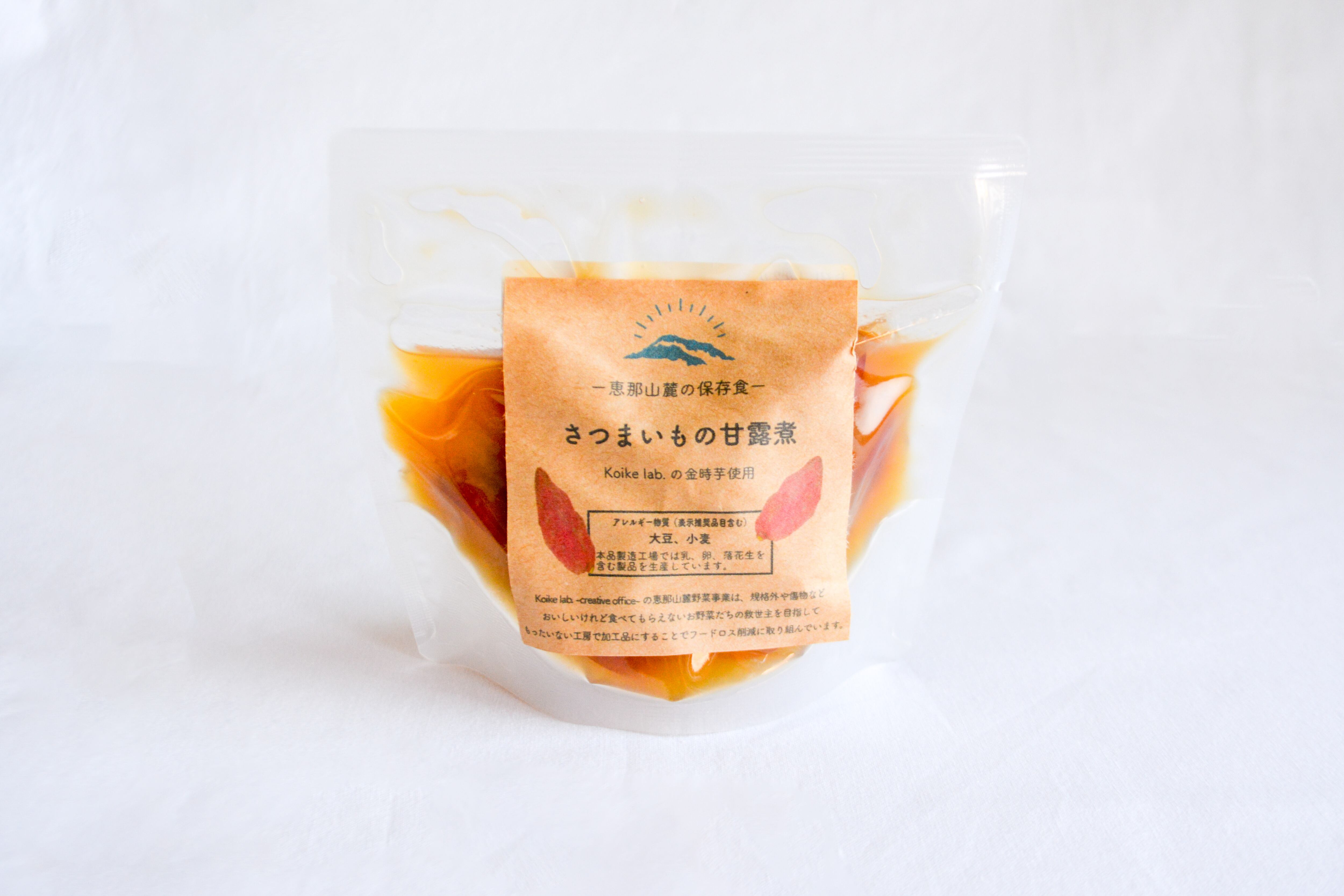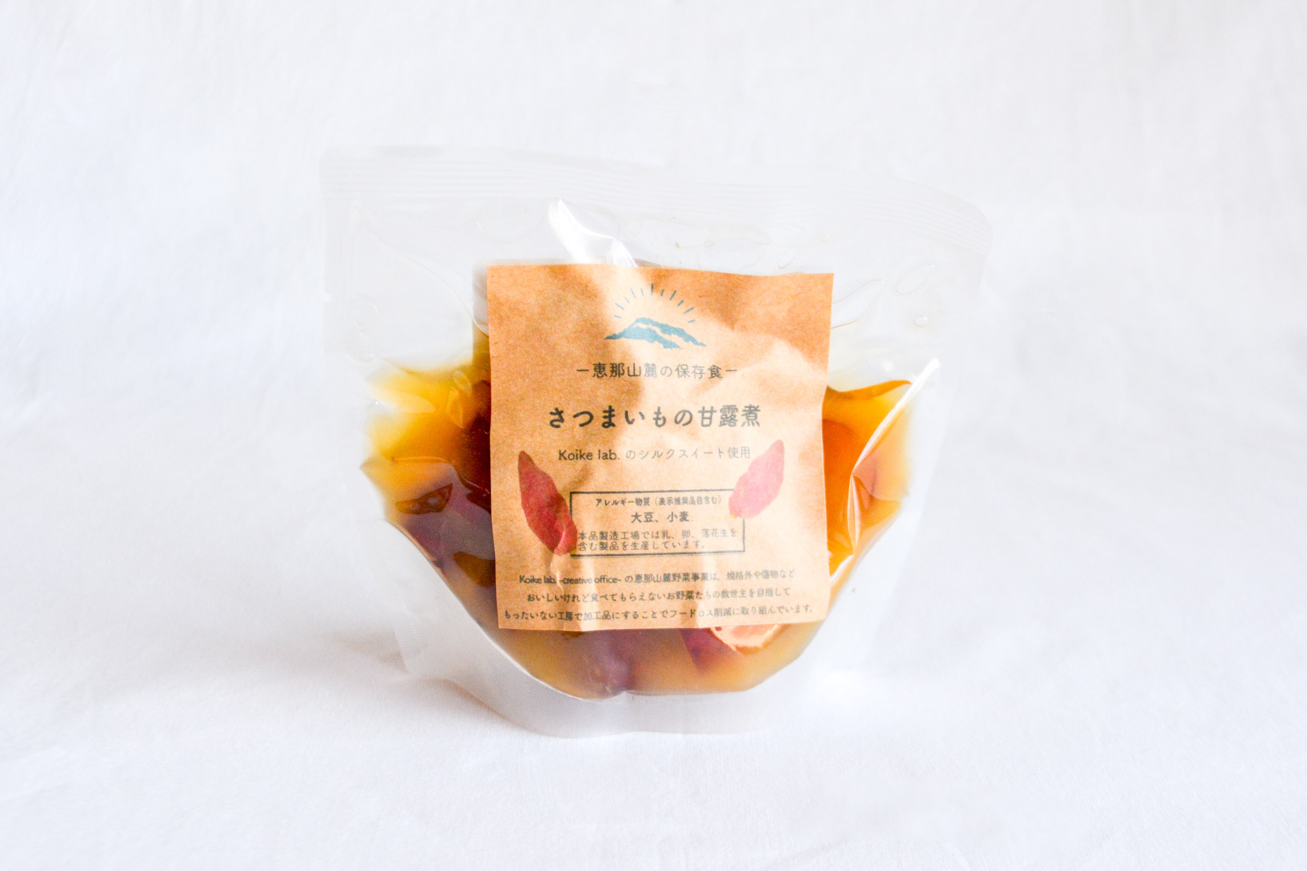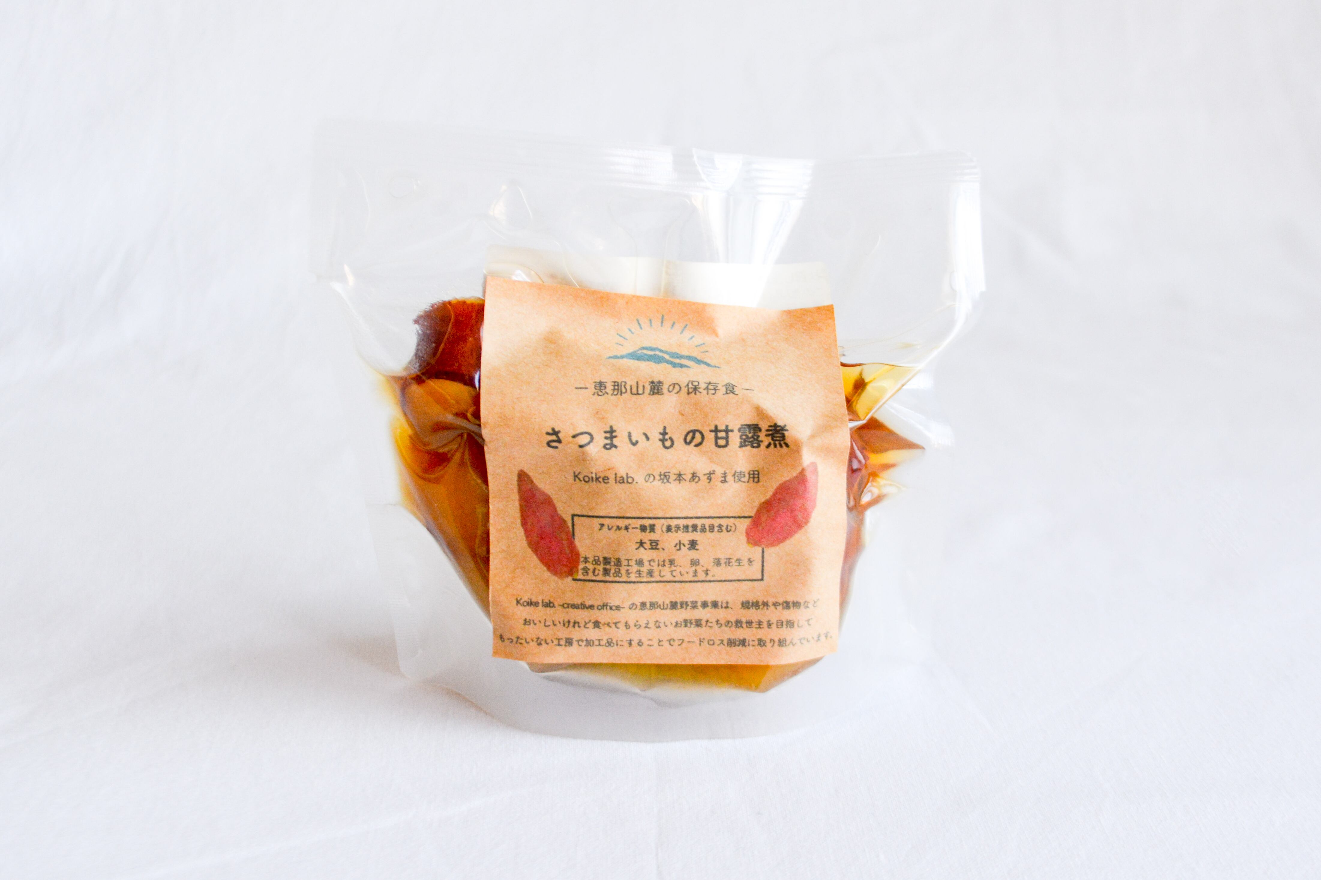 原材料:薩摩芋(岐阜県産)、みりん(もち米、米こうじ、醸造アルコール、糖類)、砂糖、こいくちしょうゆ(大豆、小麦、食塩)